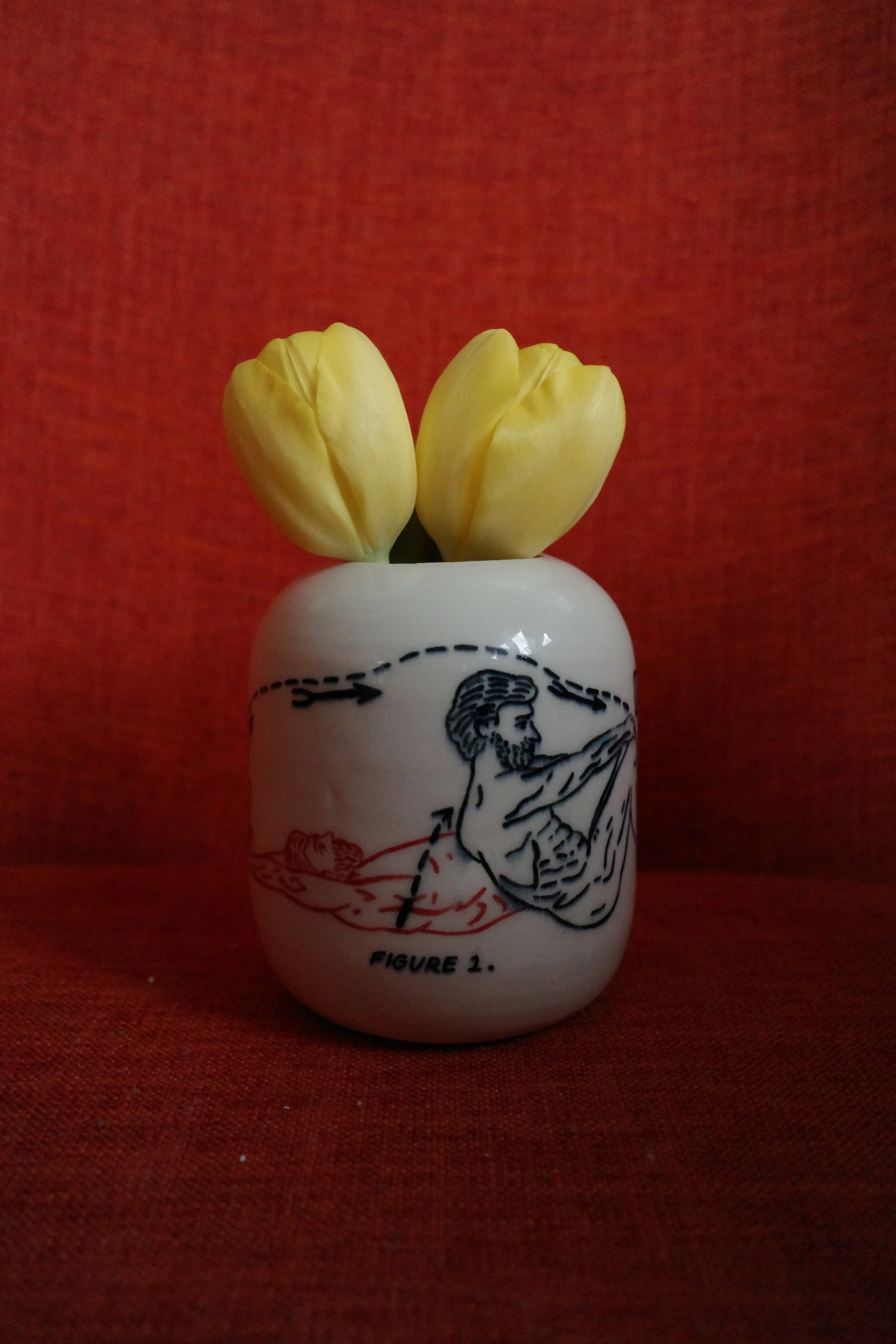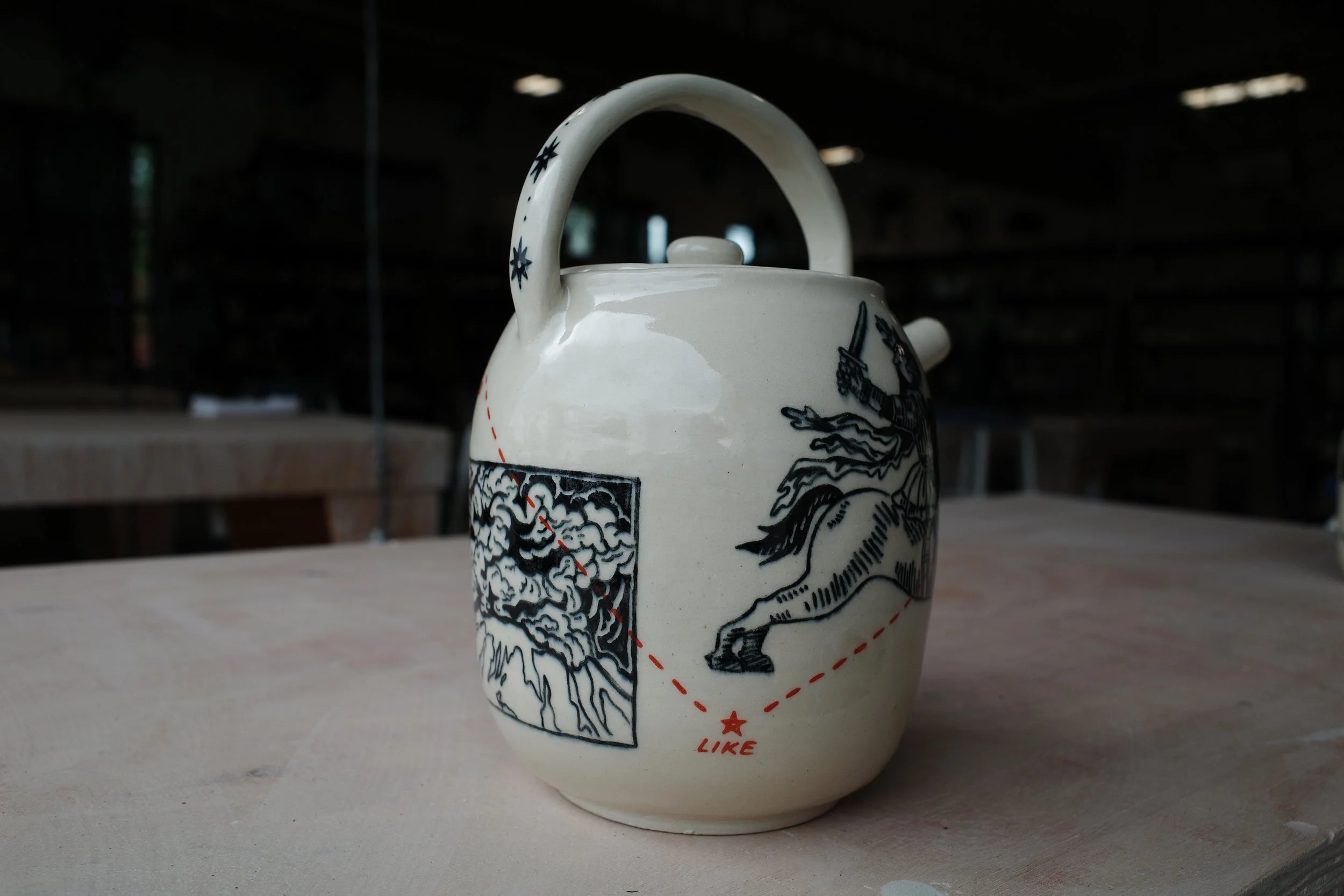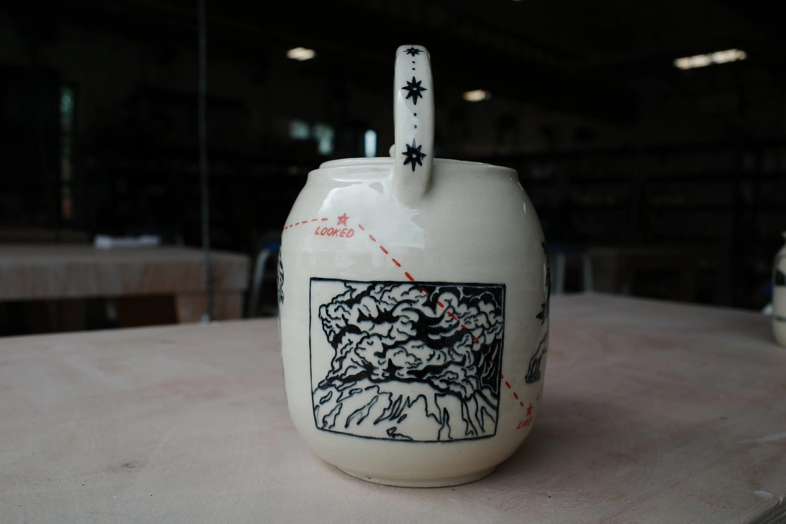 Dream House as Vase, 2025. 24x24x35cm. Underglaze on stoneware.