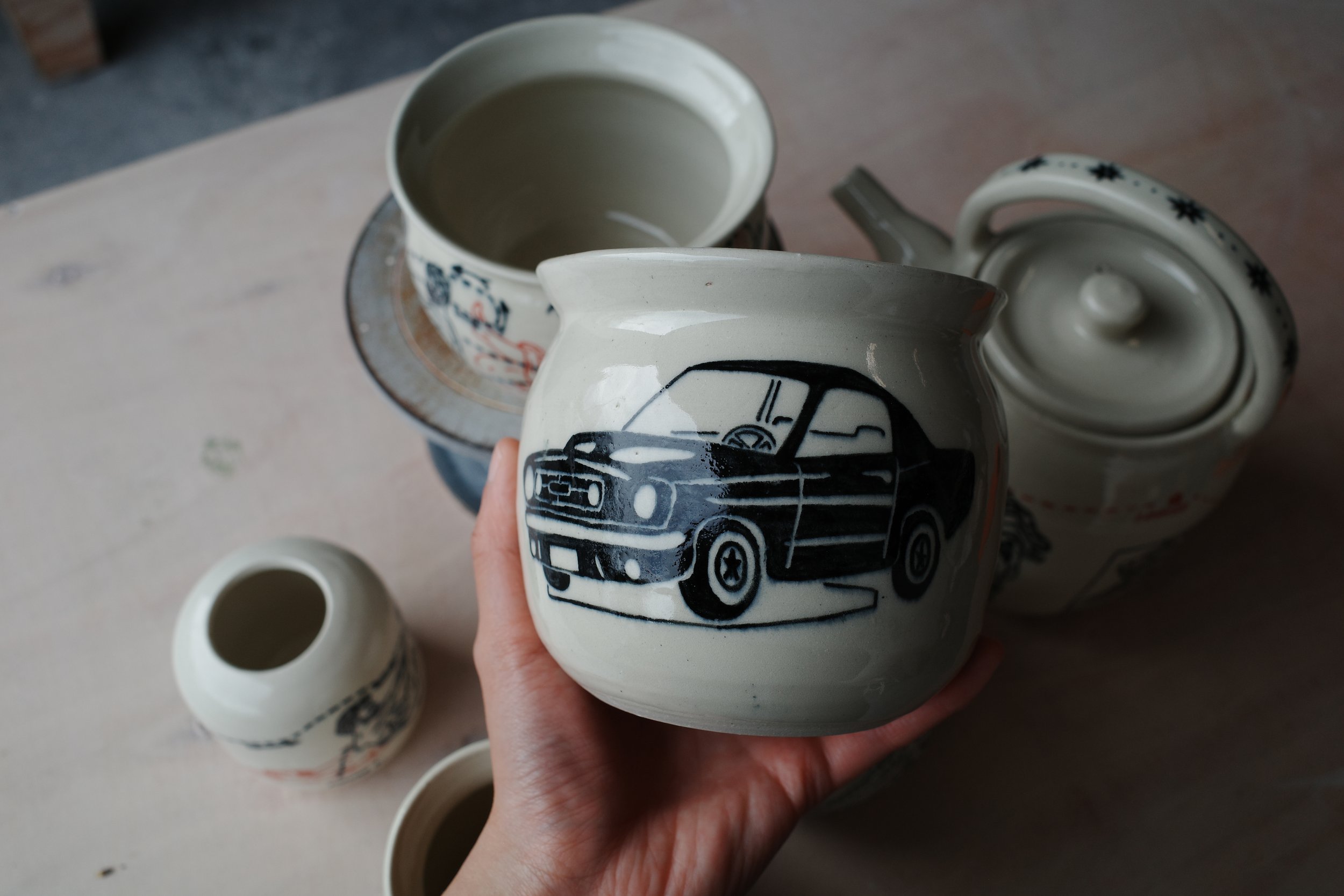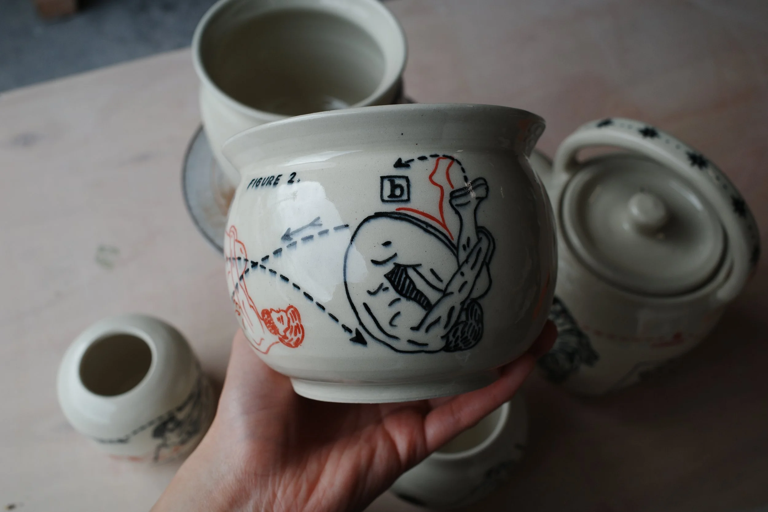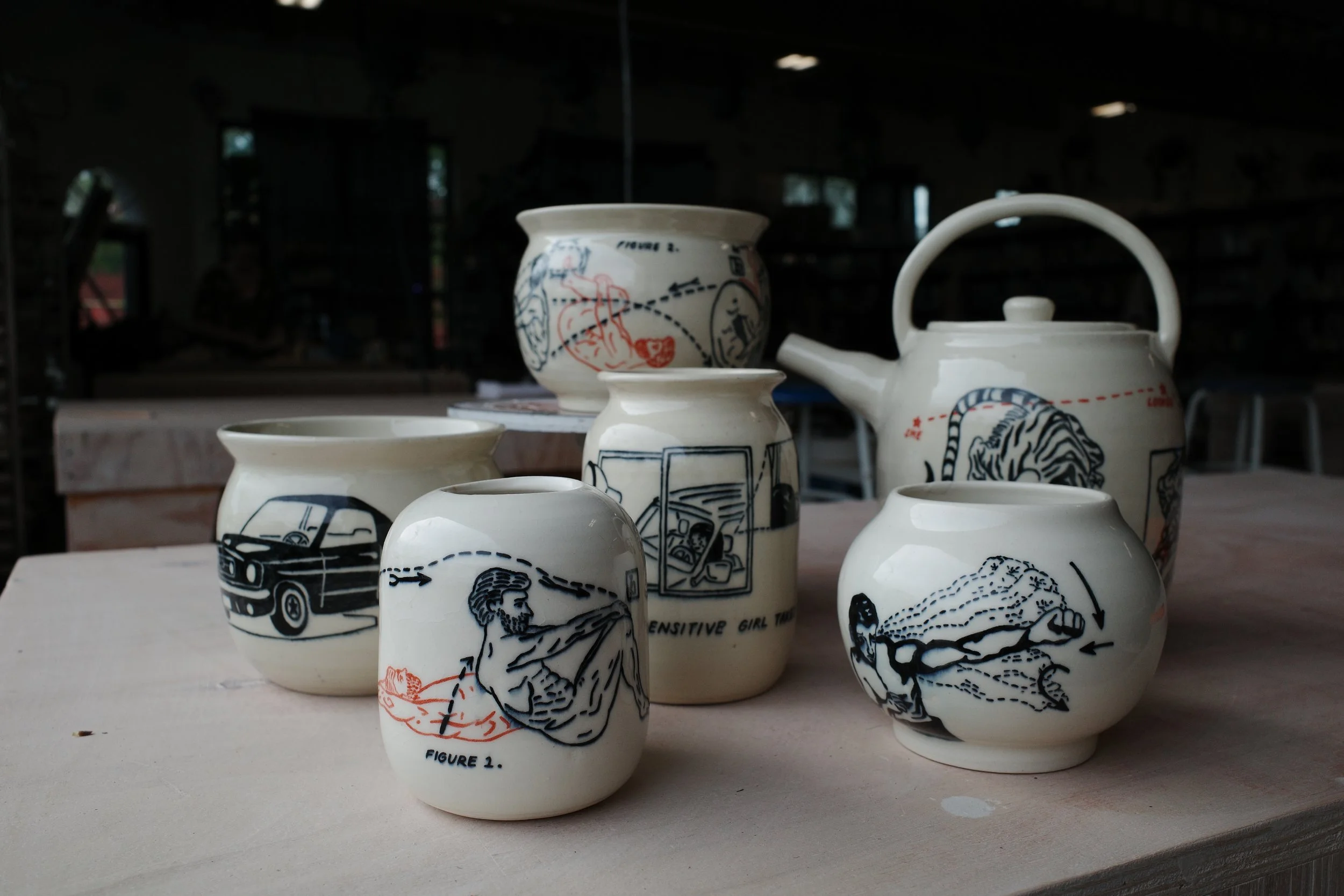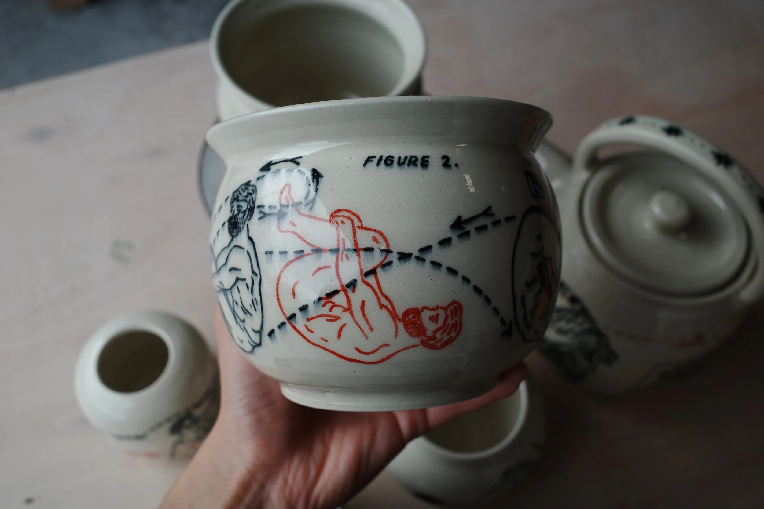 Dream House as Vase, 2025. 24x24x35cm. Underglaze on stoneware.